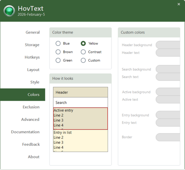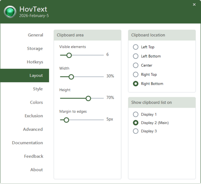 It is quite important to stress out that your copied data is saved only to your local computer, if this feature is enabled. It does not communicate your copied data to the internet in any way - no cloud or computer sharing is possible! The only internet activity HovText does, is checking for a newer version, and it does this on each application startup only (normal HTTPS using TCP/443).