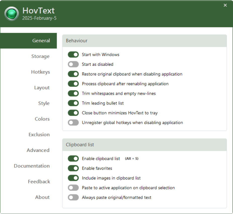 - Fixed that setting hotkey for toggling application on/off should not be dependent on enabled history